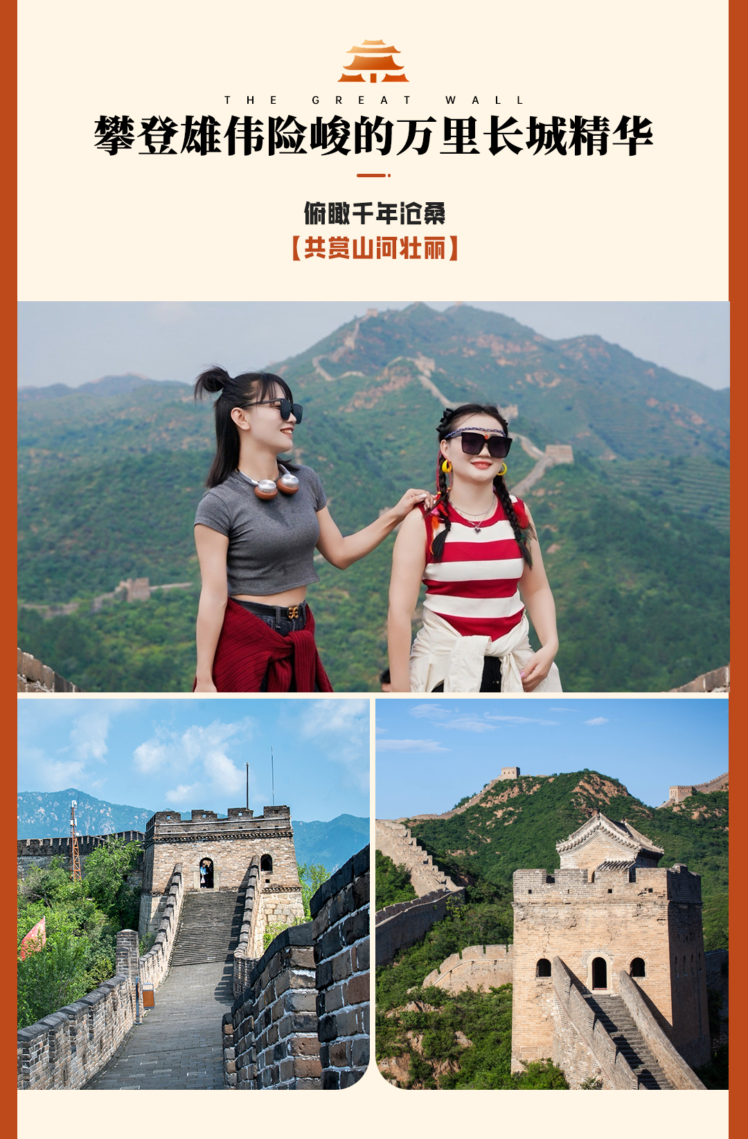 上午7:00 我们乘车前往雄伟的【八达岭长城】(车程约2小时,游玩时间约4小时),开启长城攀登之旅!长城上日照较强,建议大家穿上防晒衣,带饮用水,也可以带一些零食,爬长城了补充体力时吃。