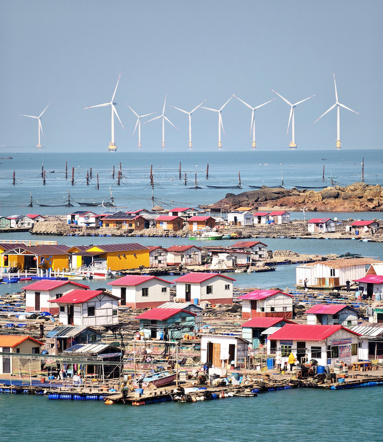 平潭岛是世界三大风口海域之一(百慕大三角、好望角和平潭海峡),所以它最有特色的景观就是海上风车群。