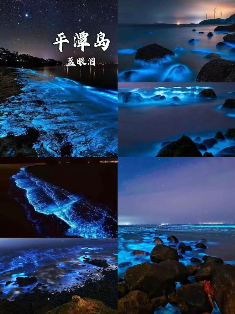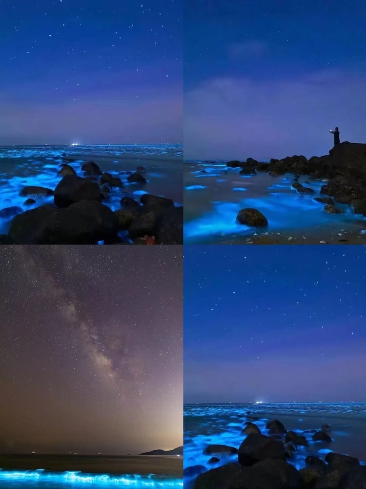 每年4至6月是“蓝眼泪”爆发季,夜晚海面泛起幽蓝荧光,如梦似幻。