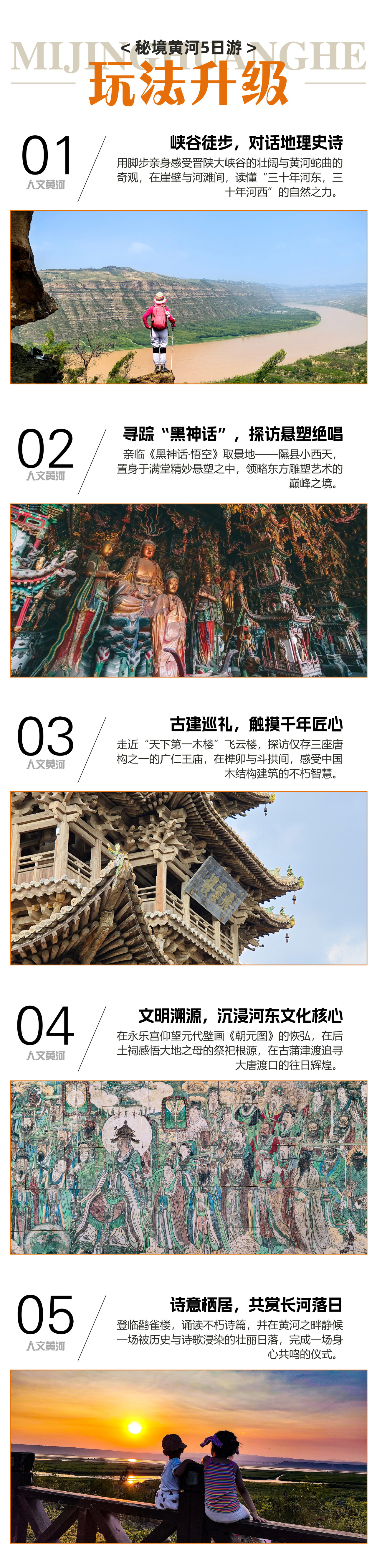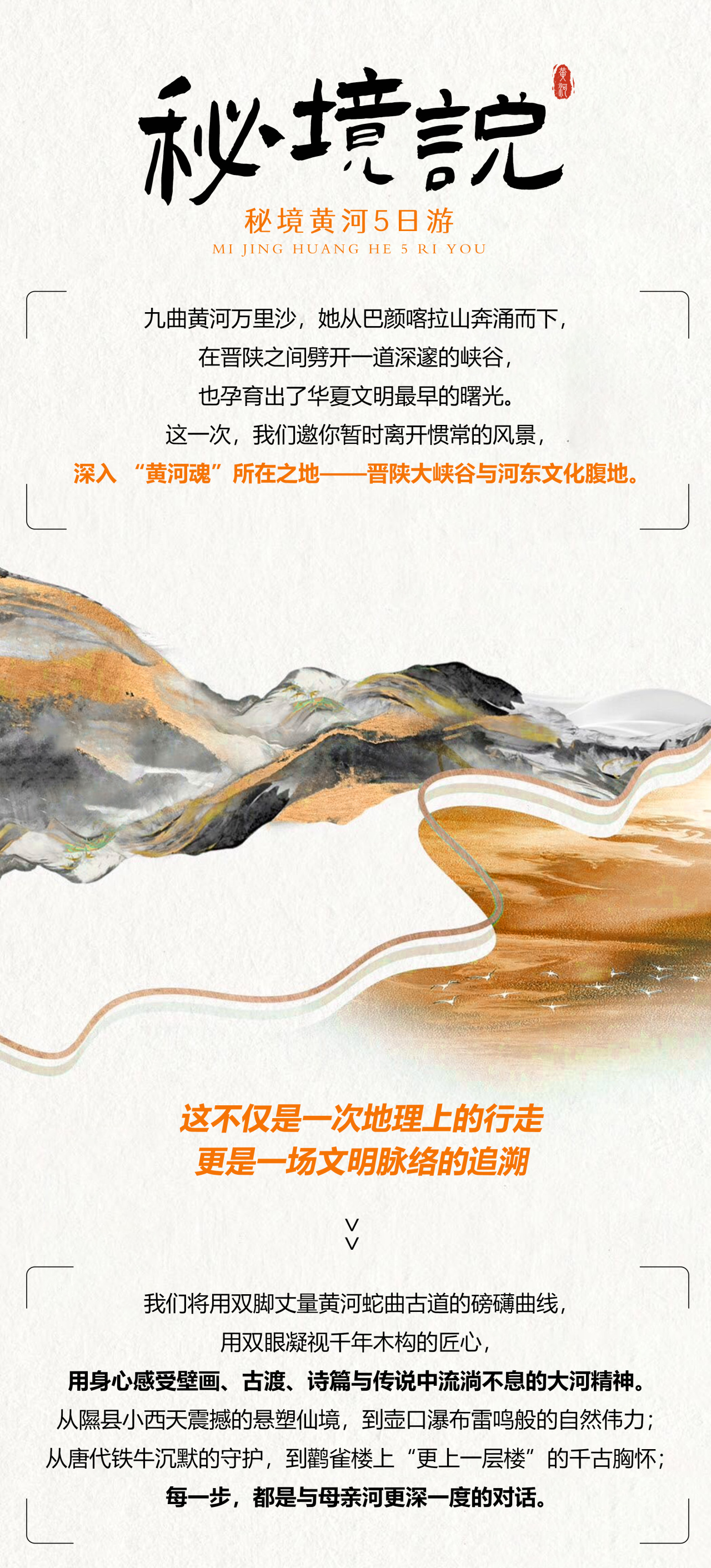 徒步结束后,乘车前往被誉为“黄河之心”的 【壶口瀑布】。当浩荡的河水从300米宽的河床猛然收缩至二三十米,激流倾泻而下,如万马奔腾,声若雷鸣,激起漫天水雾,其山崩地裂之势,是任何言语与图片都无法完全承载的震撼。别忘了取出第四套人民币50元纸币,与背面的图案实地对照,完成一次跨越时空的打卡。
