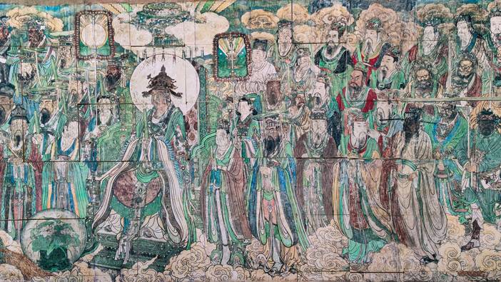 随后,我们将前往中国艺术史上的殿堂——【永乐宫】。这里不仅保存着精美的元代木构建筑,更珍藏着举世无双的元代壁画《朝元图》。近300位天神朝拜元始天尊的恢弘场面,线条流畅,色彩绚烂,堪称东方壁画艺术的巅峰。我们还将了解它从黄河淹没区整体搬迁的传奇故事,感受一代文物守护者创造的奇迹。