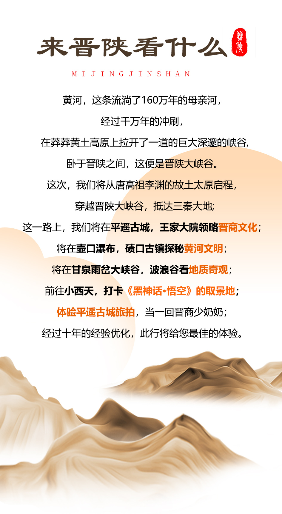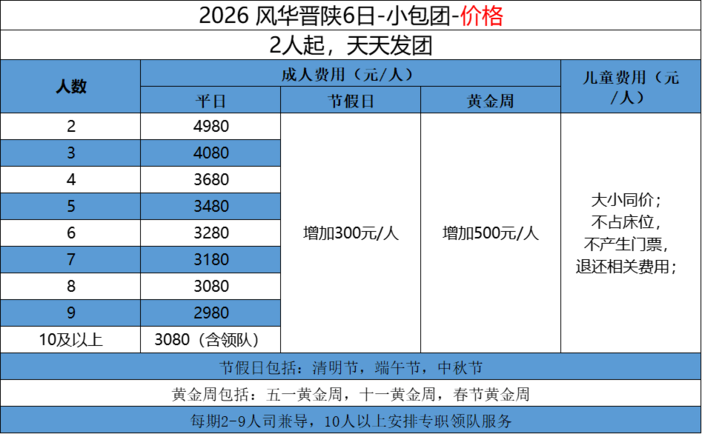 服装:晋陕地区早晚温差较大,请按提示备好所需衣物哦;