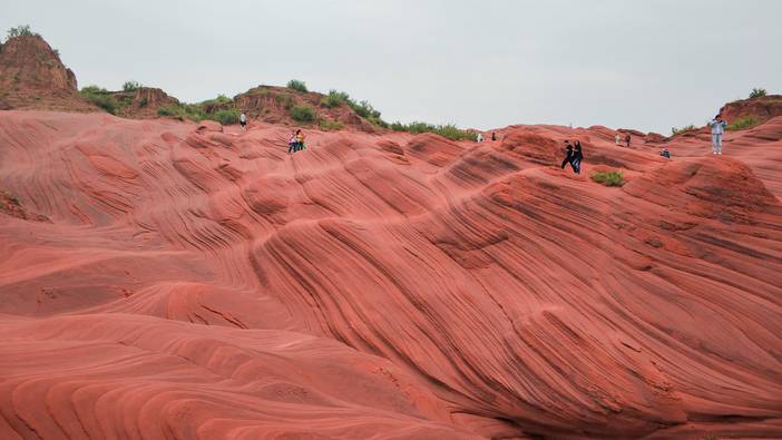 早餐后,我们前往有“大地指纹”之称的【波浪谷】。抵达后,大家舍弃传统景区,走进小众秘境水上丹霞,在这里,可以零距离的触摸到大地的指纹!在黄土高原上行走探秘,徒步踏过上亿年妖娆的红土地,略过绿如翡翠的高原湖泊。微风拂来,碧波伴着黄沙,翩翩起舞。在这里,只怕大多数人都会语言匮乏,无法形容这种地质奇观带来的视觉冲击。经过一亿五千年的风沙洗礼,绝美的丹霞地貌,层层叠叠的红砂岩如同波浪翻滚,让人不得不感叹大自然的鬼斧神工!